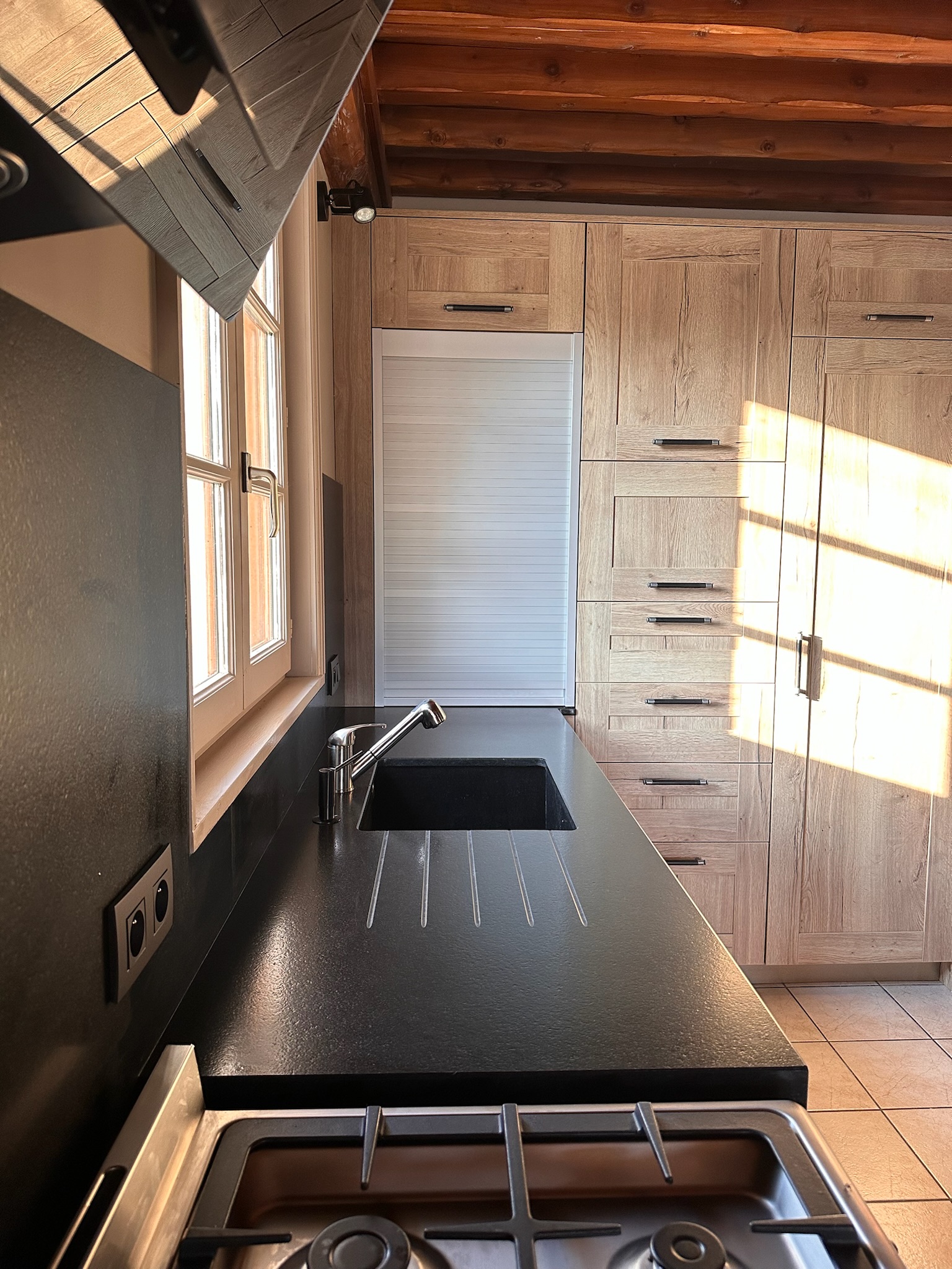 Modernité dans de l'ancien, chêne halifax et façades noires.