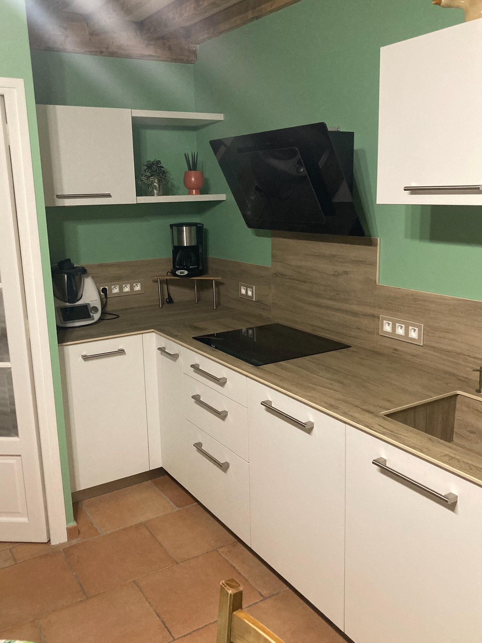 Objectif: délimité les espaces avec ce rangement penderies, tiroirs et le claustra.