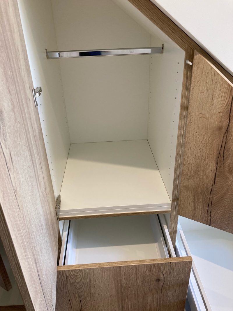 Entrée sous-escaliers Optimisation pour cette entrée avec l'aménagement du sous-escaliers, intégration de penderies (adultes et enfants), tiroirs et espace pour le chat ! Le sur-mesure permet de penser à toute la famille!